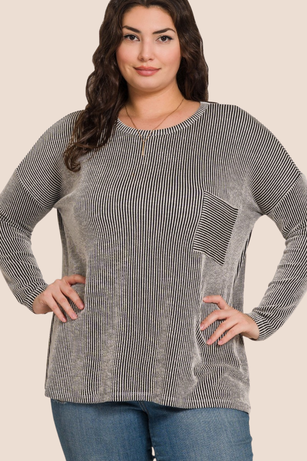 Meet Cindy—the top that’s basically a warm hug in outfit form. With her soft ribbed texture and oversized fit, she’s effortlessly cool and endlessly comfy. Throw her on with jeans for coffee runs, leggings for lounge days, or dress her up with accessories when you want cozyand chic.
