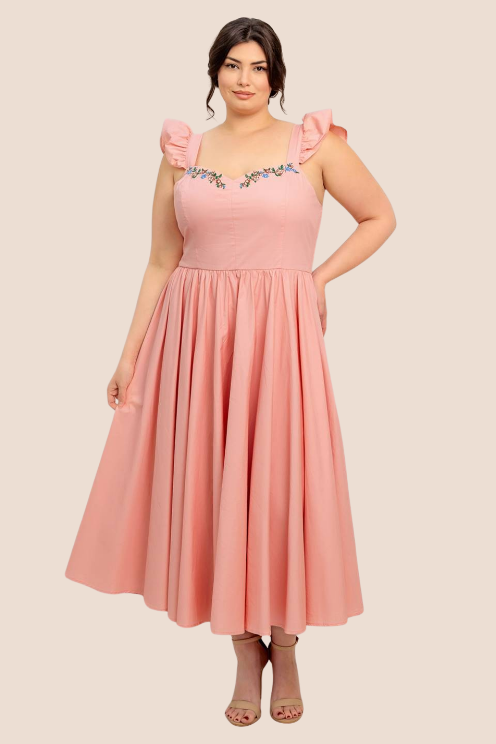 Step into a world of effortless grace with the Ellie Midi Dress. Designed with a nod to vintage silhouettes and a focus on contemporary comfort, this solid woven midi is the quintessential piece for garden parties, brunch dates, or sunset strolls.